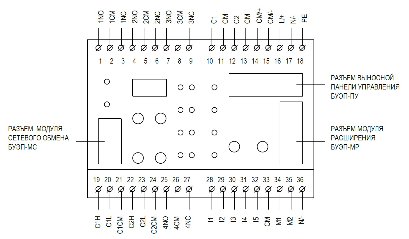 РАСПОЛОЖЕНИЕ КЛЕММ И РАЗЪЕМОВ УСТРОЙСТВА