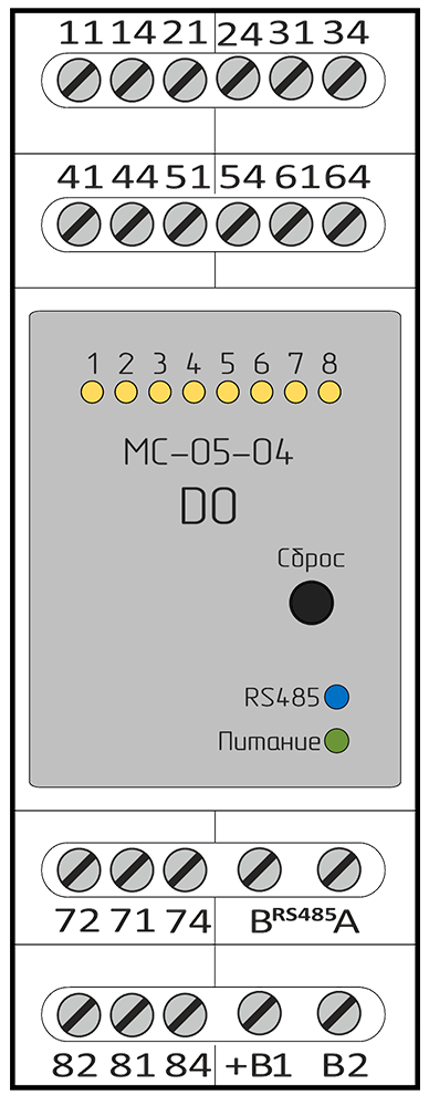 Модуль сопряжения МС-05-04 УХЛ4 арт. производителя 2000016938265 (далее МС-05-04) предназначен для расширения колличества дискретных выходов (DO) приборов управления (ПЛК, ПК, панелей операторов и т.д.). Подключение и управление осуществляются по стандартному протоколу Modbus RTU через последовательный интерфейс RS-485.