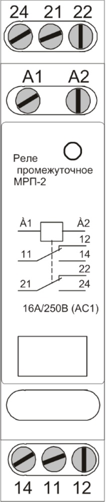 ОБРАТИТЕ ВНИМАНИЕ! После подачи питания на контакты А1-А2 никакого напряжения на контактах *1,2,4 не появится. Так, как цепь питания МРП-2 и контактные группы не связаны между собой электрически внутри.