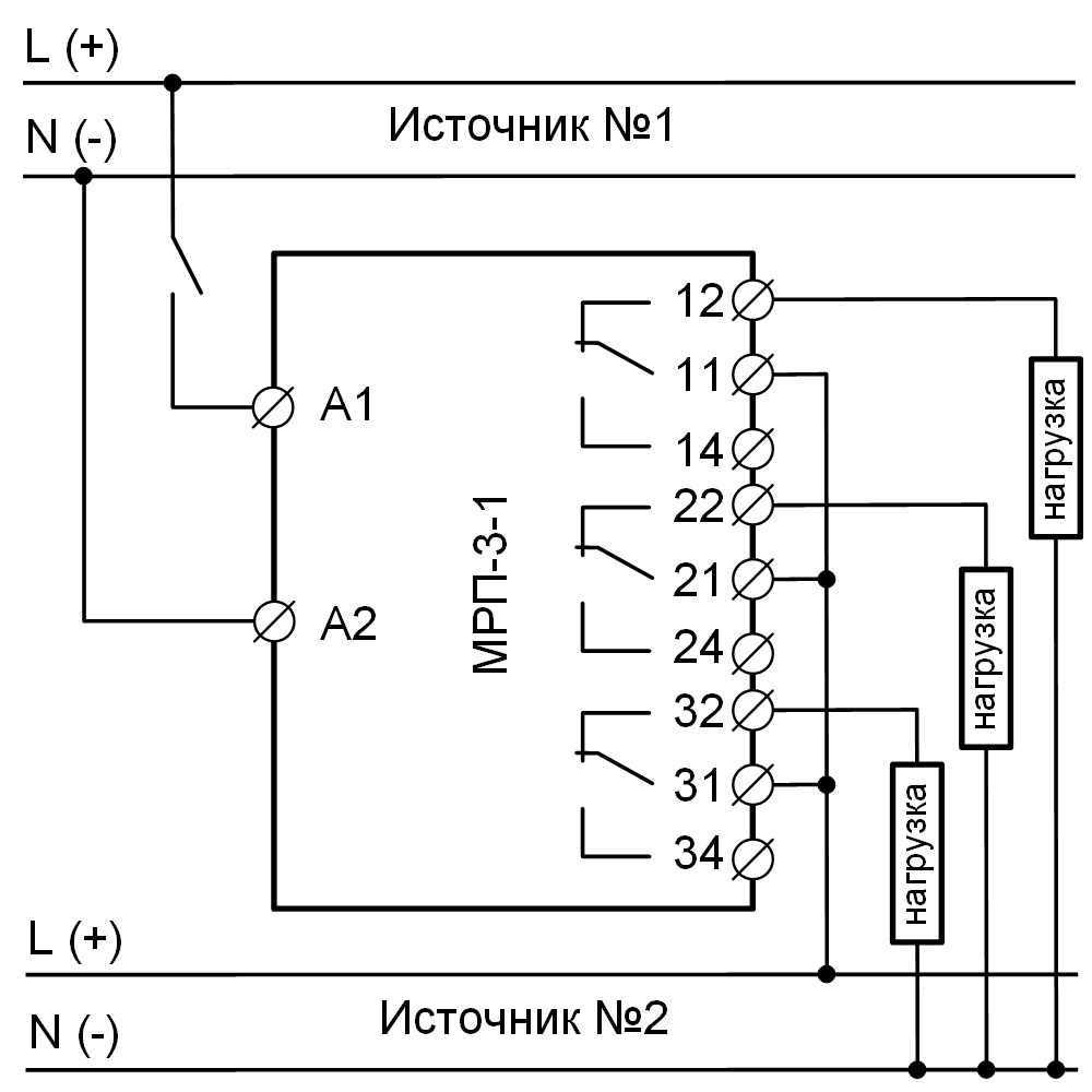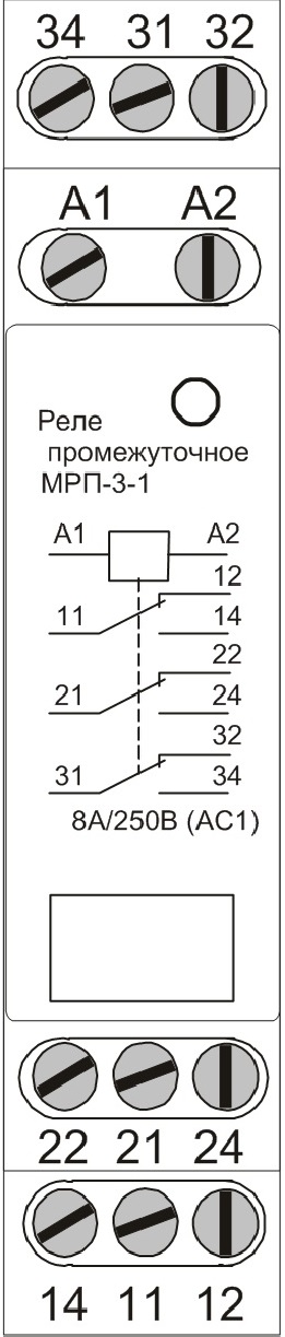 ОБРАТИТЕ ВНИМАНИЕ! После подачи питания на контакты А1-А2 никакого напряжения на контактах *1,2,4 не появится. Так, как цепь питания МРП-3-1 и контактные группы не связаны между собой электрически внутри.