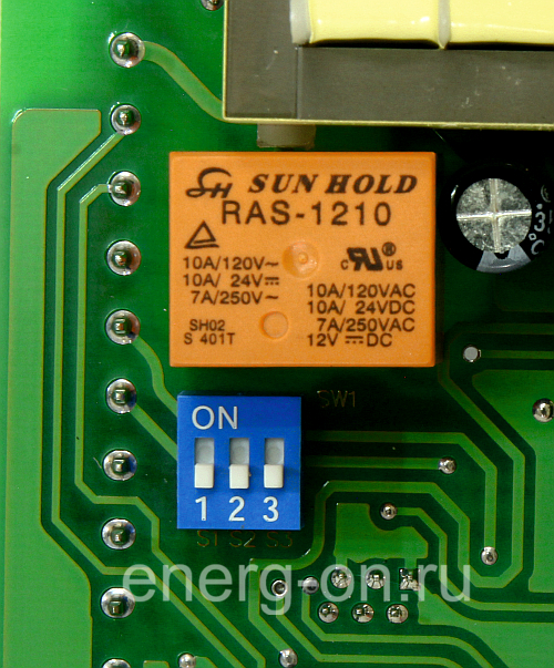 Управление уровнем выходной мощности с помощью внешних сигналов от датчиков (контроллеров). Устройство позволяет осуществлять регулировку уровня выходной мощности с помощью внешних устройств. Для этого необходимо осуществить подключение аналогового сигнала к клеммами "+" и "-". Выбор типа сигнала осуществляется на тыльной стороне платы управления DIP переключателями (4-20mA, 0-20mA, DC1-5V, DC2-10V, DC0-5V, DC0-10V). Калибровка уровней сигнала управления, соответствующих минимальной и максимальной выходной мощности осуществляется в настройках Устройства. Текущее значение уровня выходной мощности индицируется на цифровом дисплее.