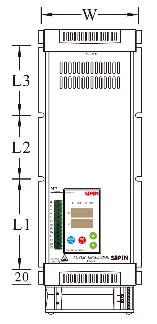 Трехфазный тиристорный регулятор мощности W7-T4V580-21KP (далее Устройство) предназначен для плавной регулировки мощности нагрузки в трехфазных сетях (звезда, треугольник, звезда с нейтралью). Устройство применяется для регулировки мощности как активной, так и реактивной нагрузки (тэны, инфракрасные нагреватели, системы освещения, трансформаторы и т.д.). Не рекомендовано использование для регулировки мощности систем освещения.