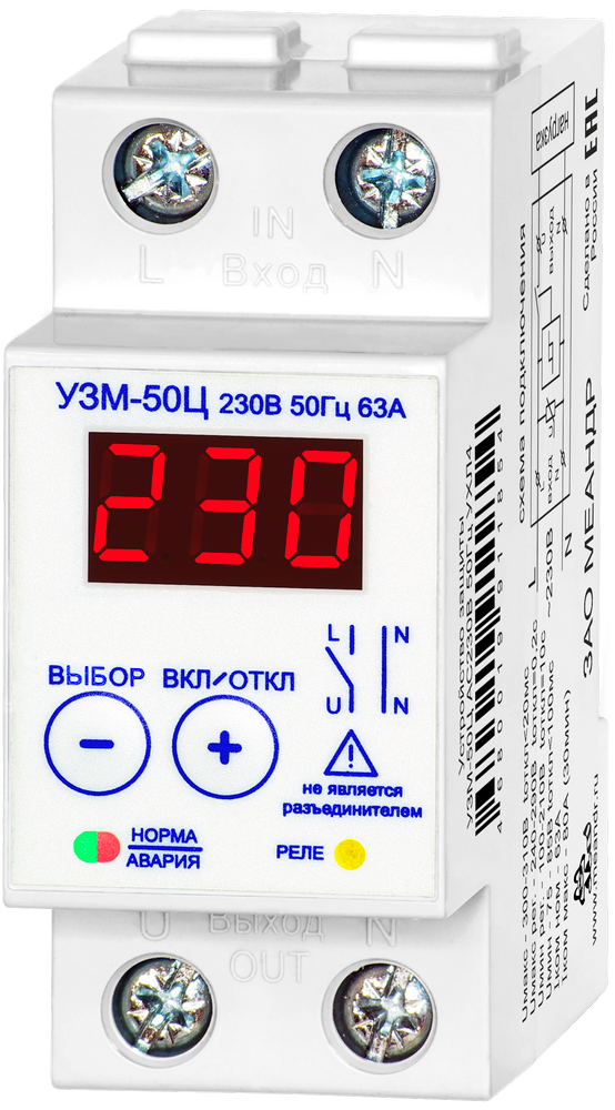 Устройство защиты многофункциональное УЗМ-50Ц УХЛ4 арт. 4680019911854 (далее УЗМ-50Ц) предназначено для защиты электрооборудования от работы при опасном для него напряжении сети (вне рекомендованного диапазона). Дополнительной (опциональной) функцией УЗМ-50Ц является защита сетей от тепловой перегрузки (ограничитель мощности).