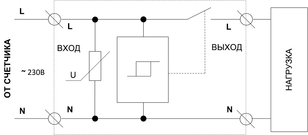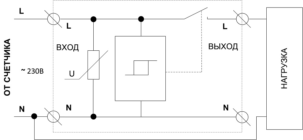 ОБРАТИТЕ ВНИМАНИЕ! При срабатывании защиты отключается только фазный провод. Нулевой провод N не коммутируется. Транзит N проводника через УЗМ-16 не является обязательным и не влияет на функциональность.